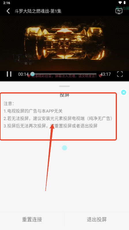 4、只要手机与电视连接同一个投屏设备就可以投屏了。