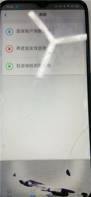 3、在消息板块中,我们还可以查看医保账户消费信息、养老金发放信息、社会保险到账信息;