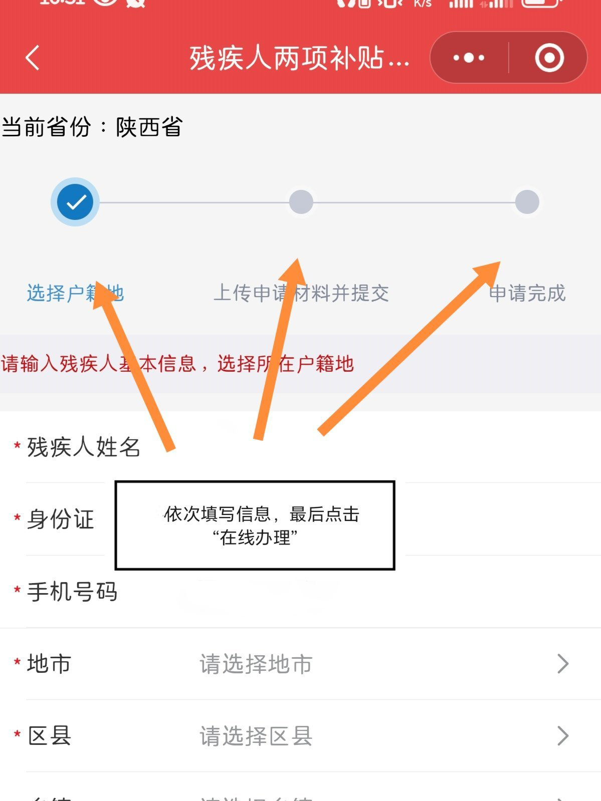 1、打开app,注册登录后,点击进入【残疾人两项补贴申请“全程网办”】。