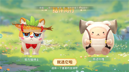 2、角色创建完成后,提供与众不同的初始宠物二选一