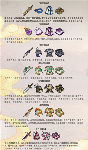 【轻灵装备】新手必备,由铜钱串成,多用于祭祀辟邪,有时会被大佬鑫来当做武器,在大佬手中堪比顶 级神兵利器。布衣由简单材质打造而成,因其材质轻巧,并且能批量打造,多用于行兵打仗。