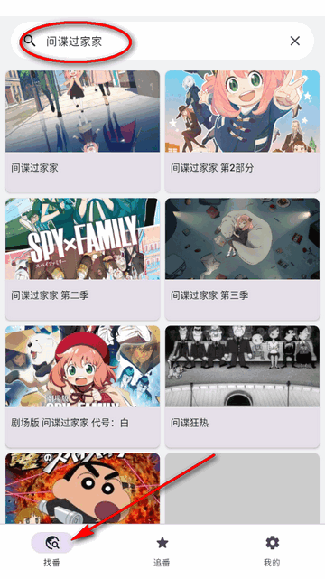1、输入动漫的名称点搜索后选择要看的剧集。