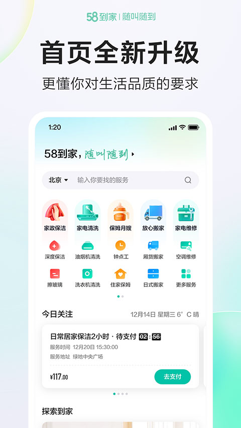 58到家app官方版是一款家政服务软件。平台自己研发的58智慧家政系统,把找工人、派订单、做售后这些环节都串起来了,服务响应快得不得了,比以前快了至少一半,用户想找个保洁,系统15分钟内就能在3公里范围内找到合适的,还能算出最优路线,让保洁员少跑冤枉路。