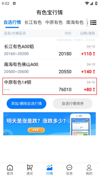 有色宝app最新版怎么添加自选行情