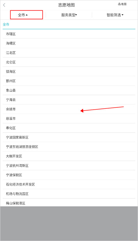 3、最后点击左上角的“全市”,选择其它地区即可更改。
