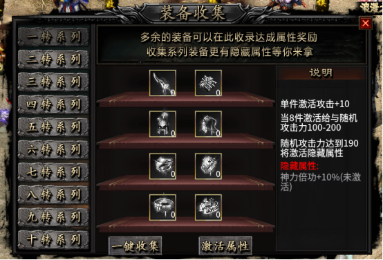第二页前期不要勾选土城有一个装备收集,把1-2转装备回收完成后在勾选。