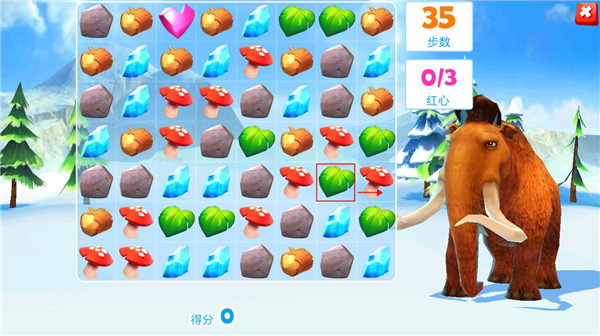5、营救动物需要进行挑战,我们需要将相同的三个物体放置在一起进行消除,将图中的红心弄到最下方即可成功拯救动物