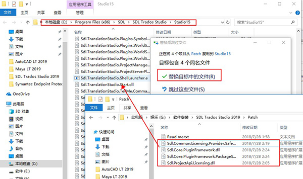 4、将数据包中patch文件夹下的破解补丁复制到安装目录下替换原文件即可,默认安装目录为C:Program Files (x86)SDLSDL Trados StudioStudio15