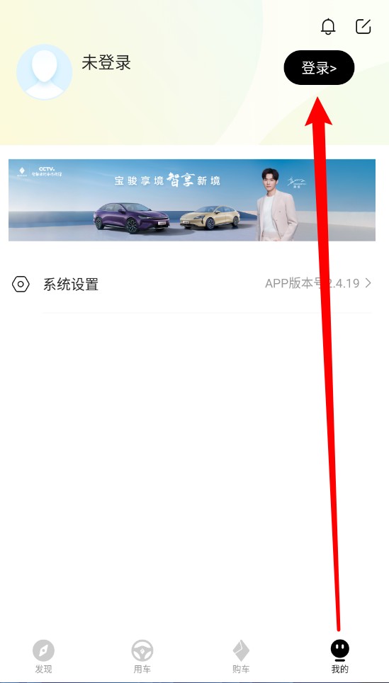 4、进入“我的”页面,点击右上角按钮完成登录操作。