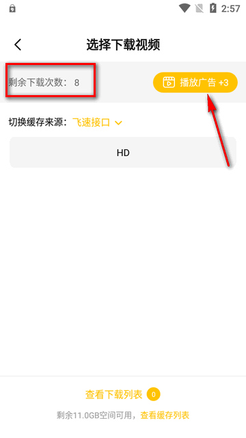 2、下载视频有次数限制,可看广告加次数。