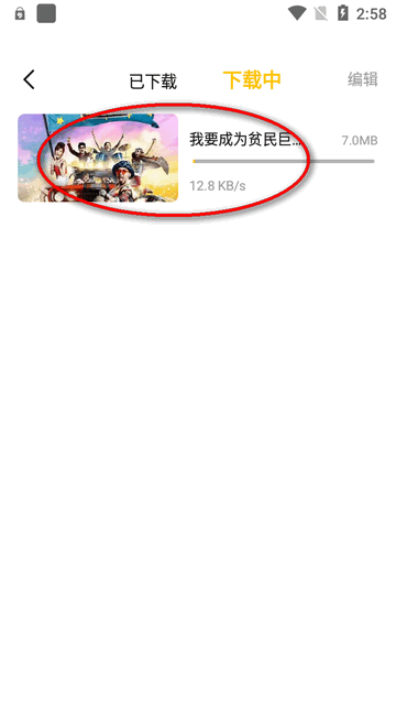 4、在下载列表中可以查看到已下载和下载中的内容,下载速度不是很快,可以挂着。