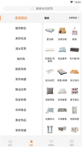 3、点击分类一栏,可以分门别类查看自己所需的商品;