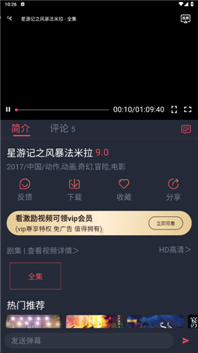 4、播放界面还提供缓存、收藏、分享多项功能。