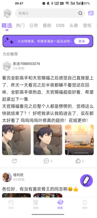 3、软件还为大家提供专属社区,在这里大家能讨论二次元相关的所有内容,还能分享日常。