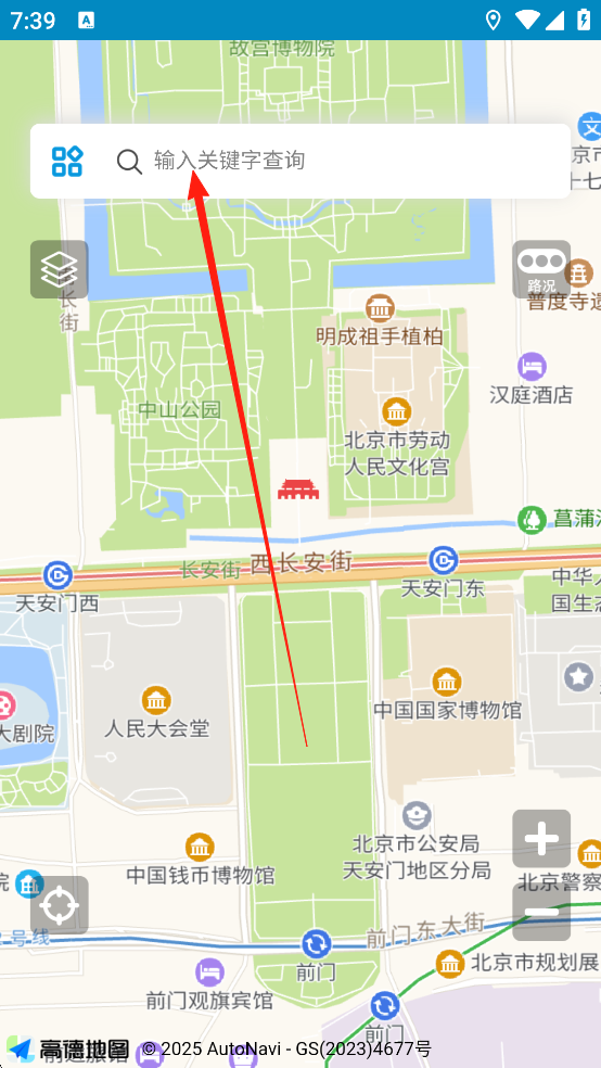 1、首先用户可以开启定位,定位自己当前的位置,然后搜索想去的目的地