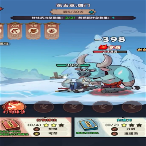 3、灵丹妙药助力战斗,在每场挑战前提升气力和战斗能力。