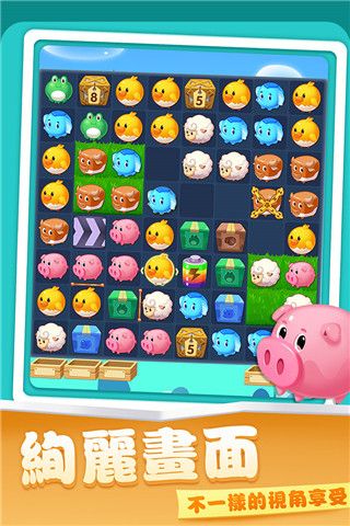 1、小动物和农作物圆滚滚的,像棉花糖一样可爱,玩着玩着就被萌化了!2、手指轻轻一滑,三个相同元素“唰”地消失,操作简单到爷爷奶奶都能上手!