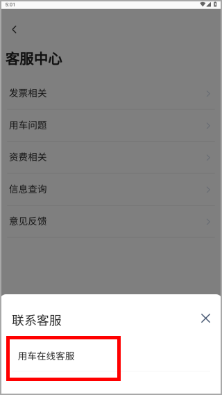 4、然后选择用车在线客服。