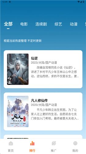1、进入软件不知道哪部影片好看,可以进入排行频道,这里电影、电视剧、动漫都有,而且都是目前最流行的