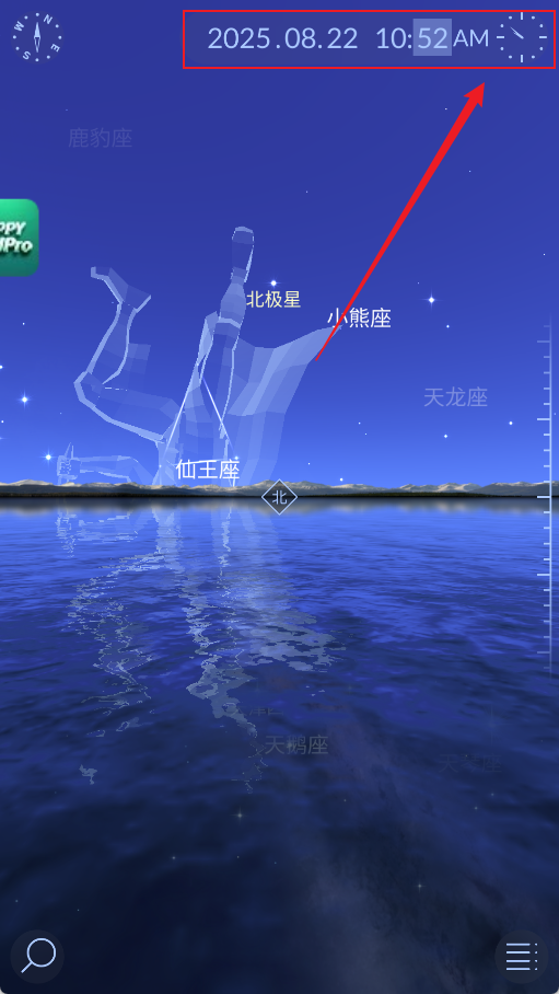 1、在主界面右上角点击即可进入时间设置,方便用户调整至任意时刻的星空画面。