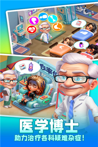 1、角色还会解锁自己独特的技能,能够大幅提升你的工作效率,合理的运用能够让你的效率事半功倍。2、探索各大城市特有的建筑风貌,各大城市的各大医院各有特色,为您带来全新的视觉享受。