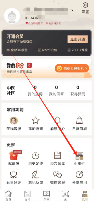 1.用户进入软件中之后可以直接在我的页面中点击小组件。