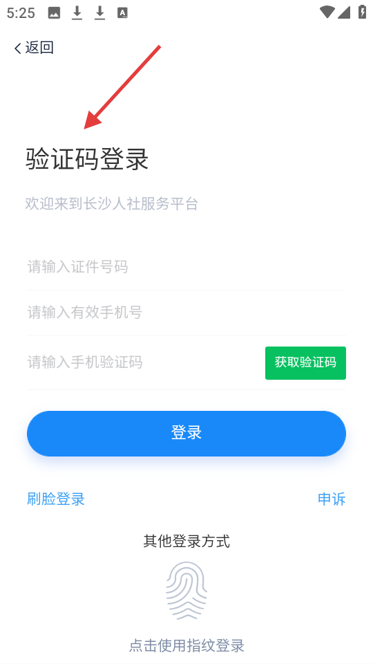 1、平台验证码登录页,需填证件号、手机号获取验证码登录,还有刷脸、指纹等方式。