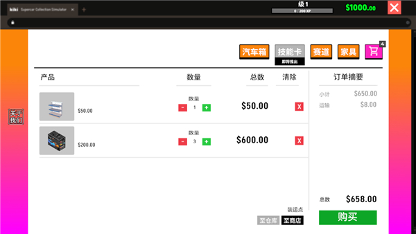 超级跑车收藏模拟器最新版是一款模拟经营手游。它把开店、赛车和收集玩出了新花样,你不再是单纯守着一家店,而是要通过开盲盒进货、布置展柜、组织赛车比赛,一步步打造自己的跑车王国,盲盒里藏着各种惊喜车型,开到经典款能稳赚,但要是押中限量款,可能一夜暴富,不过也可能血本无归,全看你敢不敢赌!