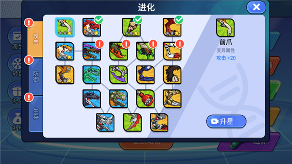 10、点击进化,你可以选择机甲恐龙进化的部位,进行升星。