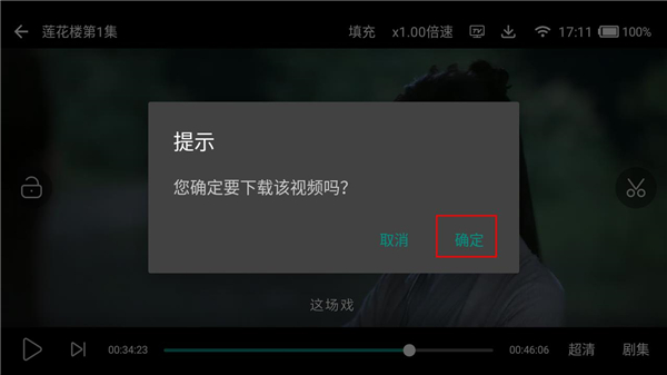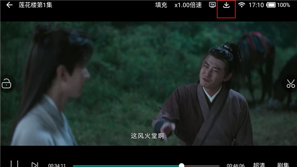 1、在播放界面,点击上面的下载标识。