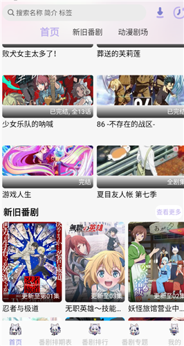 1、首页包含多部精彩绝伦的新旧番剧作品,如夏目友人帐、游戏人生、无职英雄等