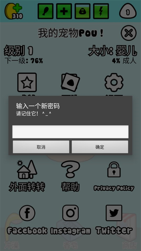 我的宠物中,最特别的是等级成长系统,pou每升一级,就能解锁更多服装、发型和动态壁纸,比如万圣节主题皮肤、警察制服,甚至能把pou变成蓝色海洋生物,超有趣,操作特别简单,单指点击就能搞定,小朋友也能轻松上手,pou还会用各种可爱表情回应你的指令,比如听到夸奖会蹦蹦跳跳,超治愈。