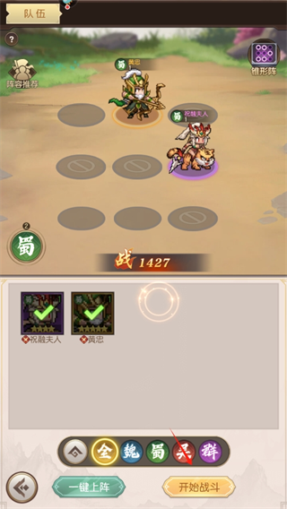 4、魏蜀吴群雄四阵营武将组队触发强力加成,如蜀国连击流、吴国灼烧流。