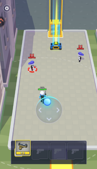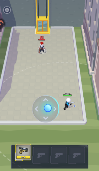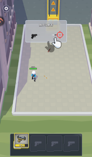 2、我们先来学习一下游戏玩法,对面敌人,我们手握枪,摇杆移动控制主角,进入有效范围,进行攻击。