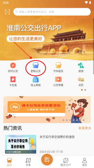 不仅如此,淮南行app更像个出行全能王,它能帮你租汽车、约车辆保养、查附近充电桩,连淮南的旅游景点和美食推荐都给你整理好了。平时充公交卡、手机扫码付车费也超方便,还能第一时间收到公交线调整、票价变动的通知,从只查公交到管你全程,它把出行相关的各种事都揽在手里,让淮南人出门更省心、更自在。