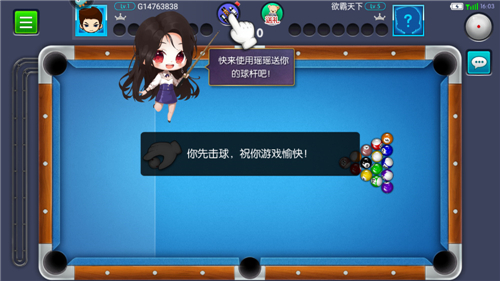 开局时,先用手指拖动白球,选好位置之后,点击一下屏幕就可以将白球摆好了