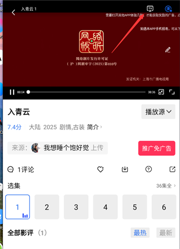 3、点击就可以观看,再点击右上角TV图标还能投屏