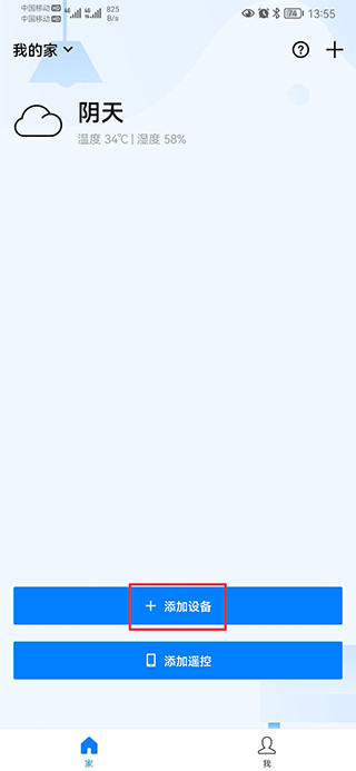 1、打开app,在首页中点击添加设备。