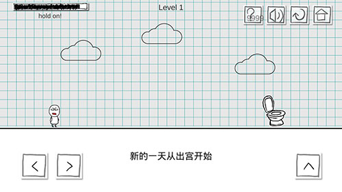 第一关,非常简单,按着右键到达马桶就可以了;第二关,需要在路面断裂处按两下跳跃就能通过;
