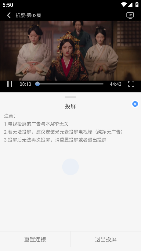 3.将我们的手机和电视连接同一个WiFi,然后点击正确的投屏设备名称,即可开始投屏操作了。