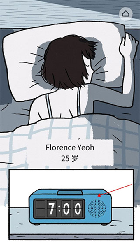 1、点击在手机界面出现的闹钟,喊醒女主。