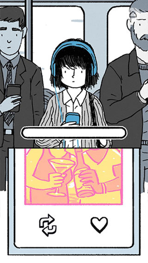 3、点击下方的音乐图像,让女主安静的听音乐。