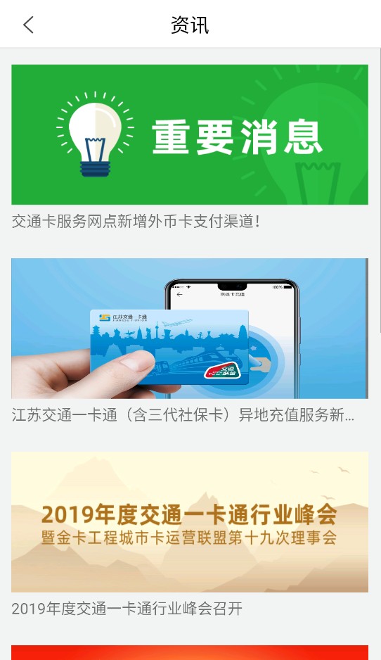 5、点击资讯页面可浏览交通卡行业新闻资讯及服务新规和会议通知。