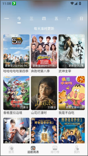 4、然后,该软件还拥有追剧周表,能够为我们提供每周每天的视频更新。