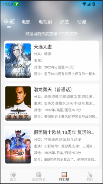 5、拥有实时排行榜功能,包括了电影、电视剧、综艺、动漫等。