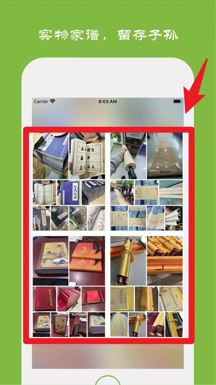 3. 点击「相册」模块可上传或浏览已保存的家谱照片、实物图卷与扫描文献,分类清晰。