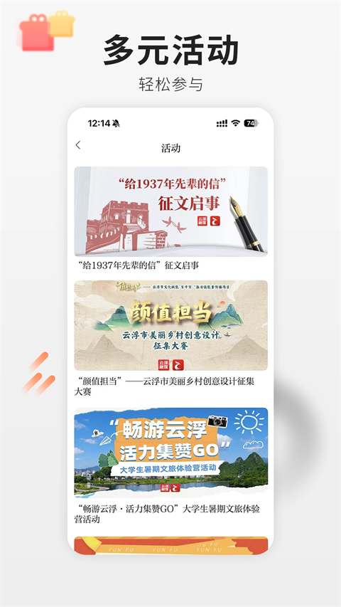5、活动板块集中展示云浮大型活动、节庆庆典,参与方式便捷。