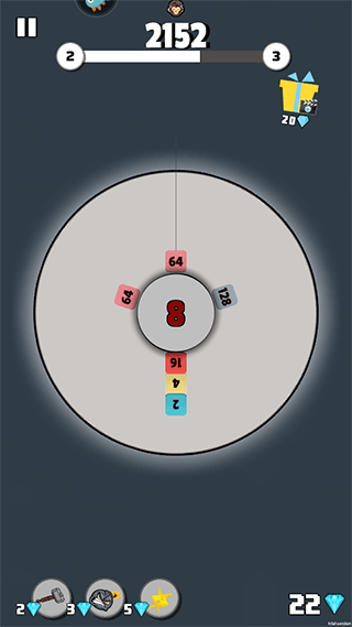 脑力大作战官方版是一款趣味十足的数字策略游戏,玩法围绕旋转加合并展开。玩家通过左右滑动屏幕控制中央圆盘旋转,接住不断下落的数字方块,每个方块上的数字会随着合并而翻倍,比如两个2合并成4,两个4合并成8,最终目标是合成出2048这个终极数字。