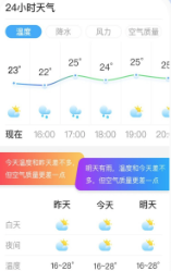 包含查看实时天气、24小时天气、生活指数、湿度趋势、昨日今日明日天气对比等多种信息;