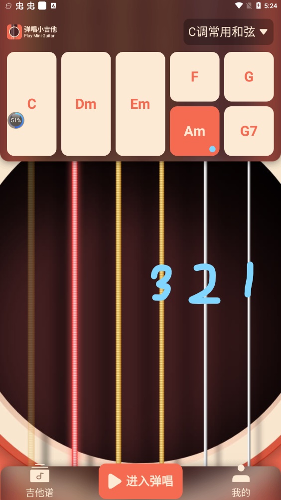 4、琴弦震动动画+真实音色,模拟真实吉他演奏体验。